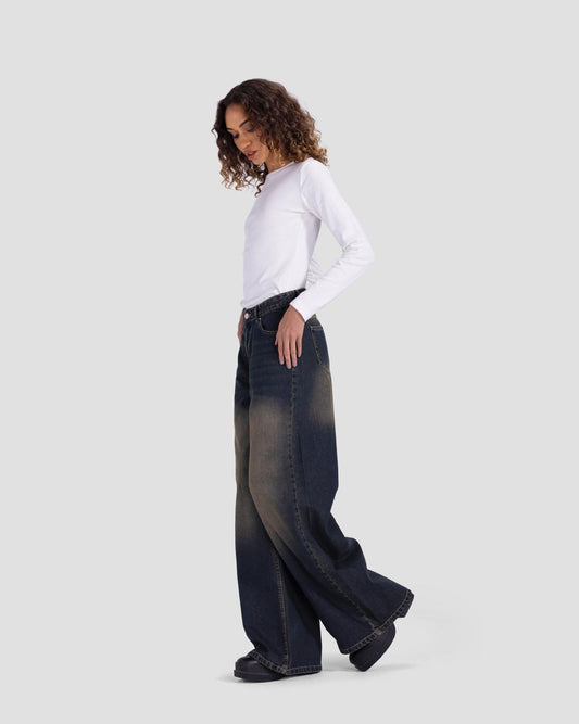 Basic wide-leg pants in dirty washed blue with brown shades